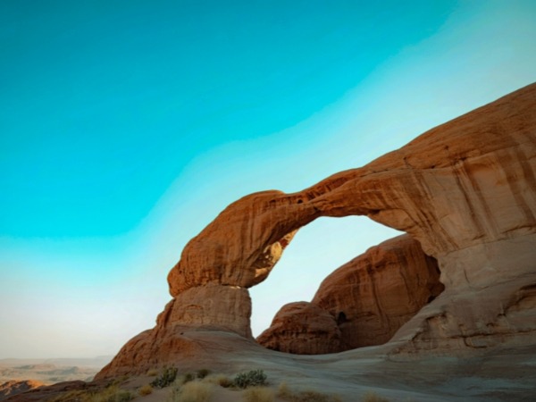 Known as Rainbow Rock or The Arch, this formation is 90 minutes from Al Ula city centre. It forms a natural bridge like a rainbow stretching across the sand. The rock surface contains small quartz crystals, also known as desert diamonds, which shimmer in the sunlight. Rainbow Rock is also popular for stargazing because the area has low light pollution.